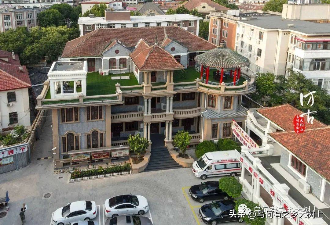 从今日的角度来看,这座建筑显得十分独特且颇具魅力。它占地7.9亩,建筑面积达2400平方米,被打造成一个美丽的花园住宅,楼体分为主楼、后楼、东楼和南楼四个部分。其中,主楼作为会客楼,采用混合结构,分为两层,局部则为三层,配有地下室,整个建筑的屋顶设计为多坡瓦,非常具有传统韵味,而墙面则用琉缸砖清水墙面装饰。特色十足的三层天台上,巧妙设置了三个风格迥异的凉亭,中间的凉亭采用罗马式屋顶和简化的柯林斯柱式,展现出西方建筑的典雅,东侧则是一个传统的攒尖顶圆亭,西侧又有一个较简洁的西洋凉亭,交相辉映。