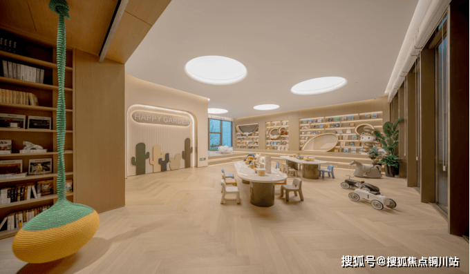 会所在负一楼,地上地下一共1300平左右。这是儿童区,孩子们可以在这里看书,写作业,做手工,绘画,空间够大,上小学的孩子们从学校过一条马路,就能从北门进入会所进行学习,太实用了。