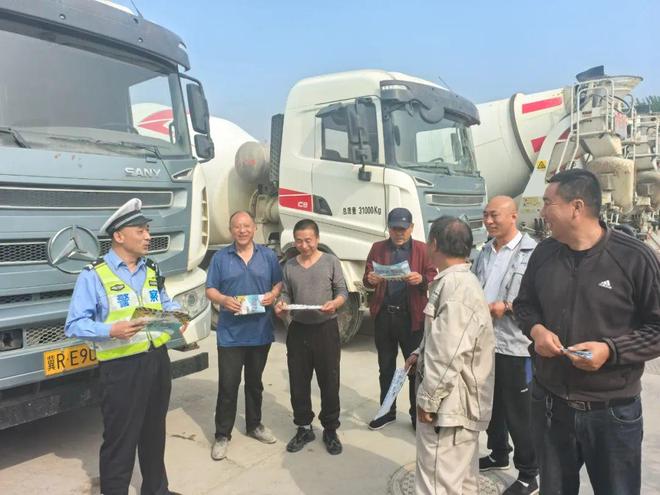 5月8日,廊坊交警三河大队组织宣传民警深入辖区兴达、隆昌商品混凝土有限公司,开展交通安全检查及宣传教育活动。民警督促企业严格落实安全主体责任,加强车辆日常维护、动态监控及驾驶人的教育培训,严禁出现酒醉驾、疲劳驾驶、超限超载等违法行为。